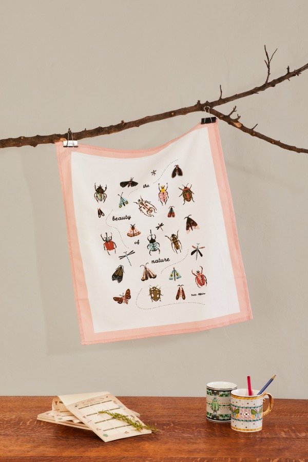 Paño de cocina en gabardina de 100% algodón con estampa exclusiva de insectos.